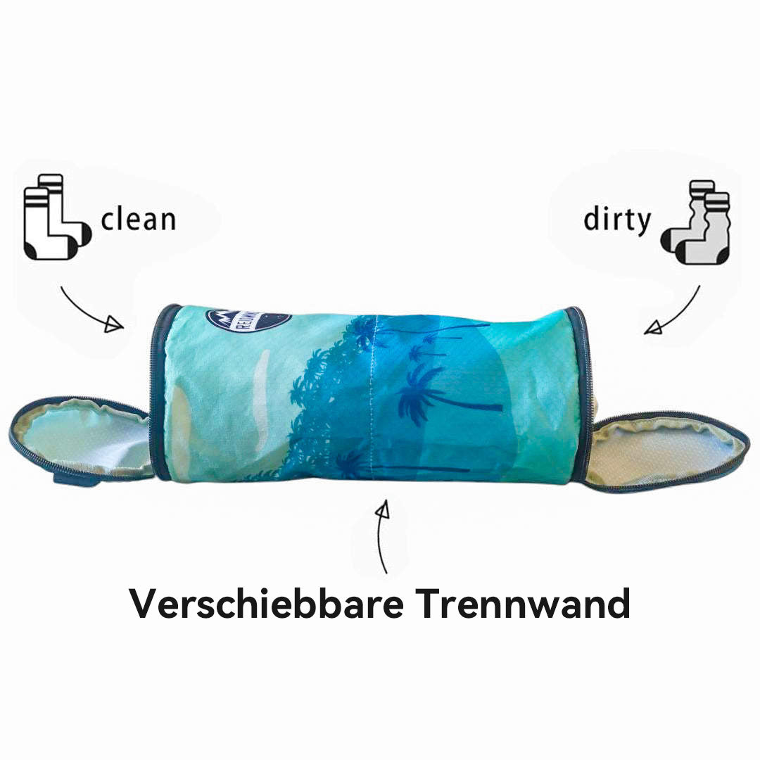 Du weißt nie, wohin mit deiner schmutzigen Unterwäsche auf Reisen? Wir haben dieses Problem gelöst mit dem Packing Cube Clean & Dirty ™ ! Ein Unterwäsche-Organizer, der saubere und schmutzige Unterwäsche mühelos trennt. Diese Erfindung ist einzigartig und in dieser Form nirgendwo anders zu finden!