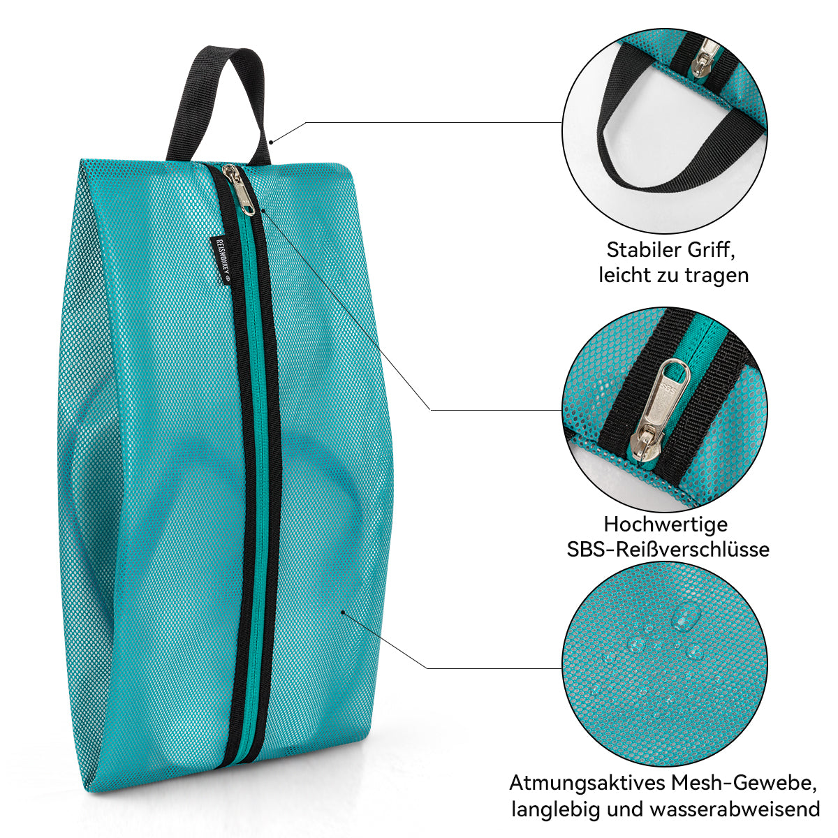 Egal ob beim Camping, Backpacking, im Sommerurlaub oder auf einem Wochenendtrip – diese Schuhtasche ist unverzichtbar, wenn du mehrere Paar Schuhe oder Flip-Flops mitnehmen möchtest und Wert auf saubere Aufbewahrung legst.