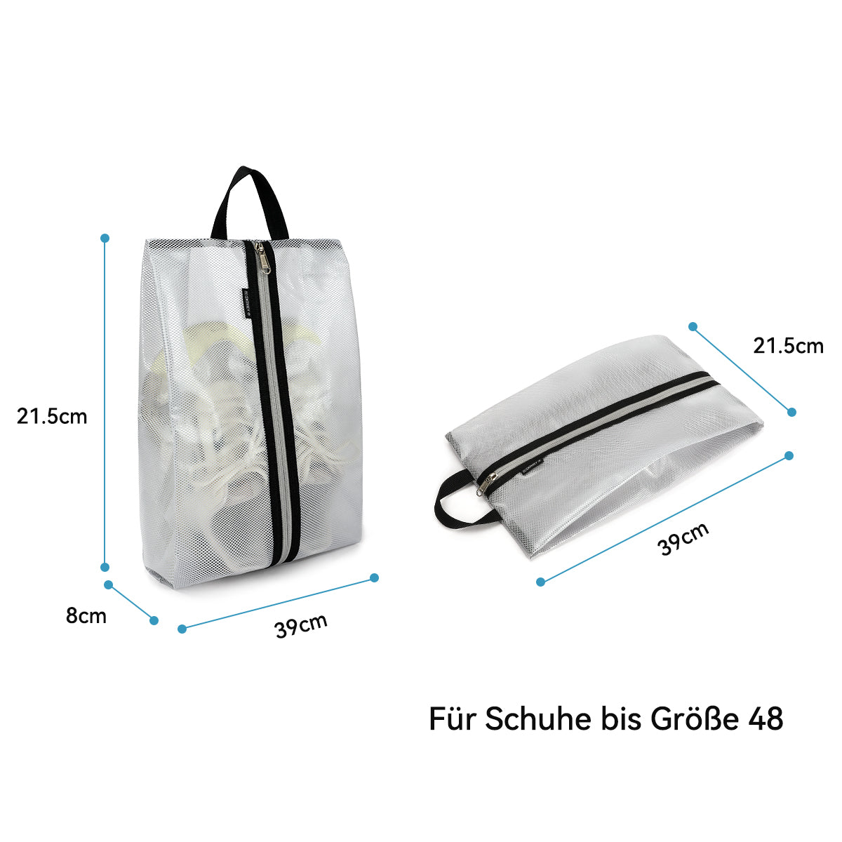 Sie ist ideal für alle, die gerne mit leichtem Gepäck unterwegs sind. Trotz ihres geringen Gewichts ist sie geräumig genug für mehrere Paar Schuhe oder Hausschuhe und eignet sich für Größen bis 46. Je nach Schuhart kannst du mehrere Paare unterbringen.