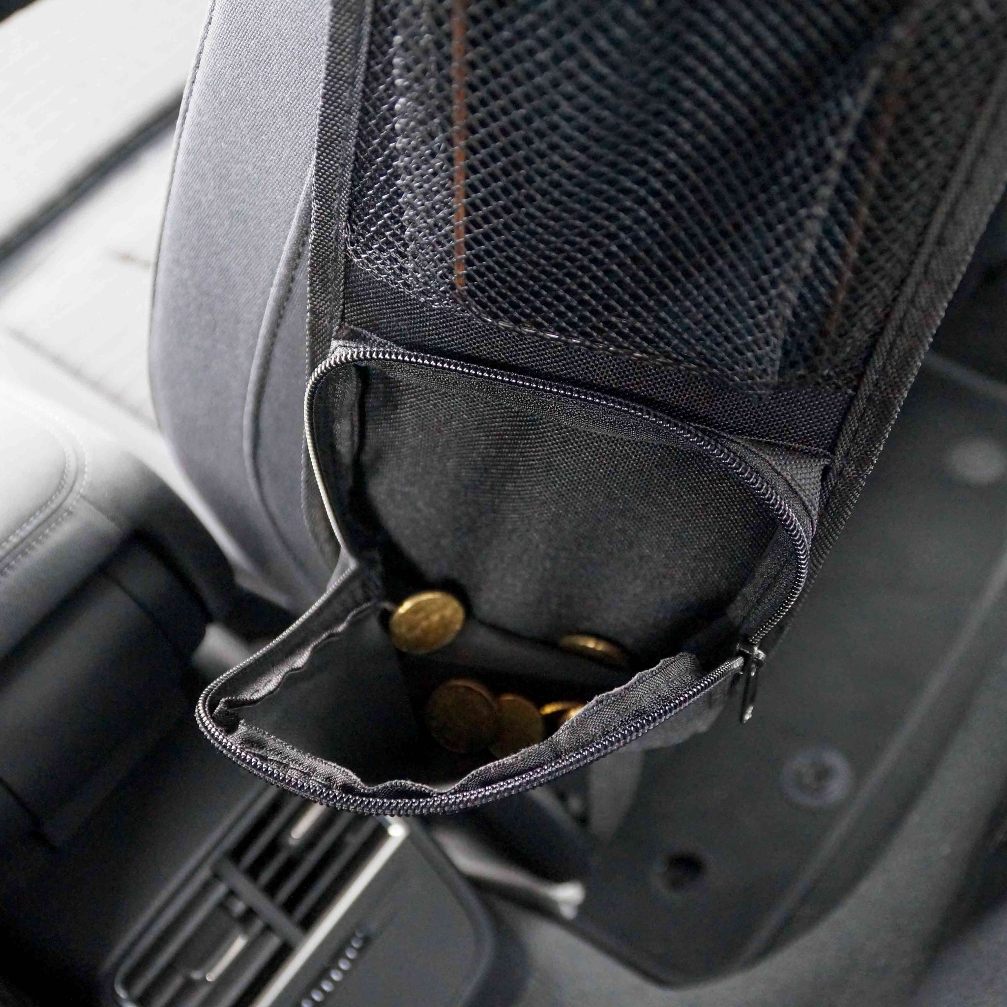 Der Reismonkey Auto-Organizer spart Platz und sorgt dafür, dass dein Auto unterwegs nie im Chaos versinkt. Bewahre Münzen und Scheine, Quittungen, deine Kreditkarte und deinen Führerschein in der praktischen Tasche mit robustem Reißverschluss auf. Nie wieder Bargeld suchen!