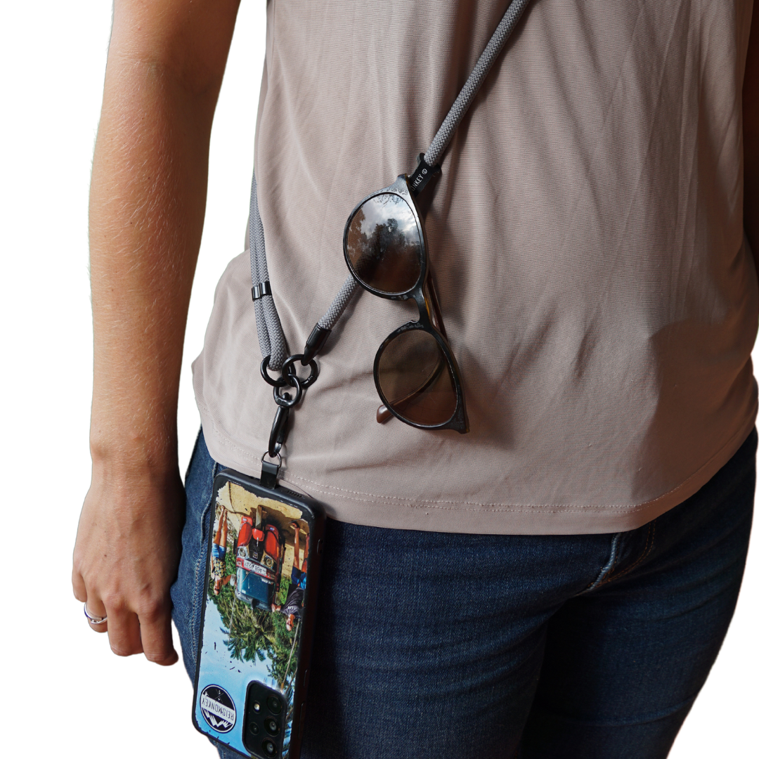 Das Handy-Lanyard ist auch im Alltag top. Du stellst die Länge stufenlos ein und trägst es entweder um den Hals oder quer über die Schulter. So hast du dein Telefon immer schnell zur Hand.