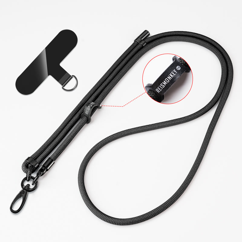 Die Kordel besteht aus extra starkem, langlebigem 7-mm-Material; Endkappen verhindern Ausfransen. Du kannst die Länge schnell verstellen und es auf verschiedene Arten tragen. Die Haken sind aus robustem Zinkmetall und bis 20 kg belastbar. Die einteilige Halteplatte, die in die Hülle kommt, ist besonders stabil – so bleibt dein Telefon sicher befestigt.