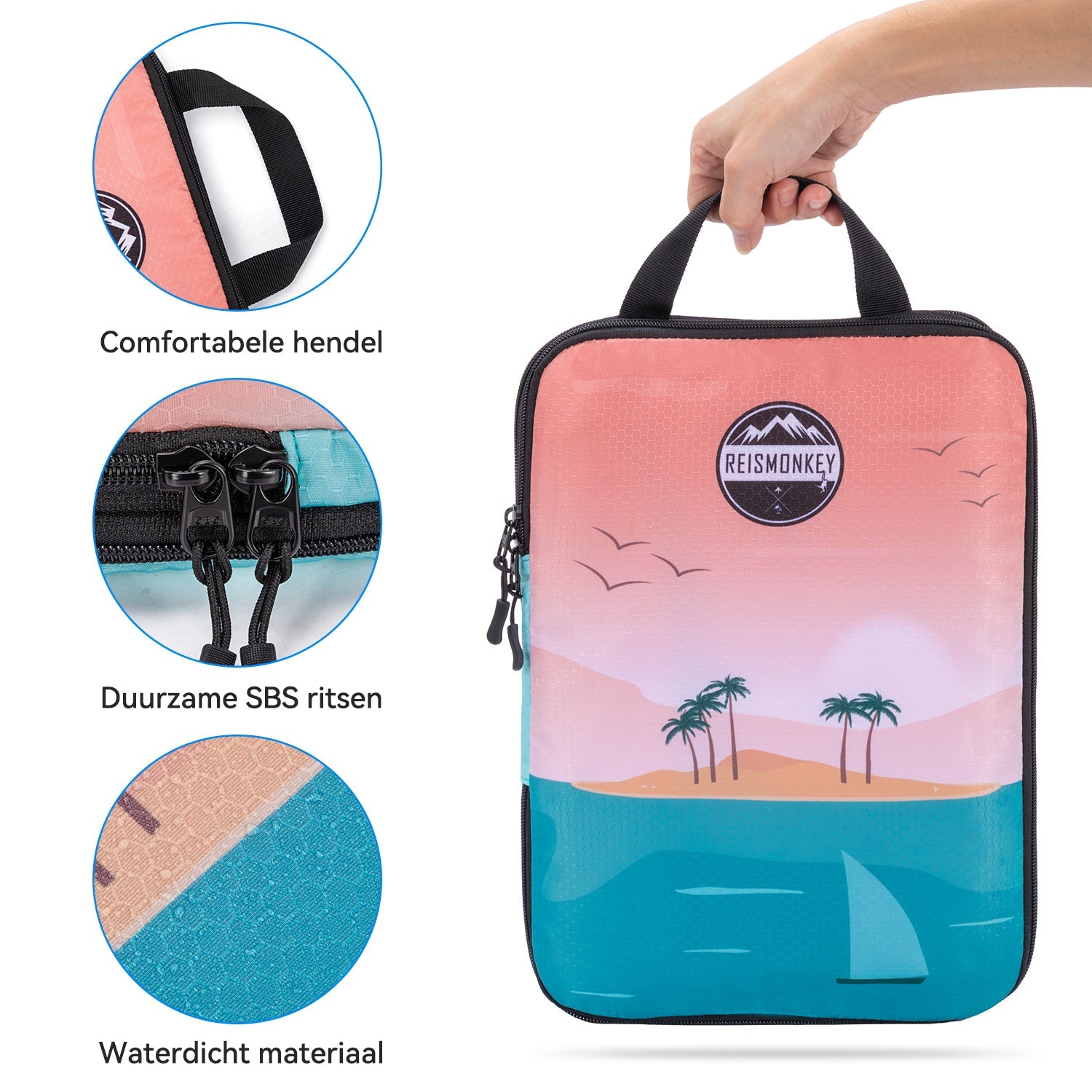 Das coole Design einer tropischen Insel mit Palmen macht Lust auf die nächste Reise. Der Cube eignet sich perfekt für Handgepäck, Rucksack, kleinere Taschen, Reisetaschen oder Weekender. Dank seiner praktischen Größe ist er ideal für alle Reisearten – und die perfekte Ergänzung zu deinen anderen Packing Cubes!