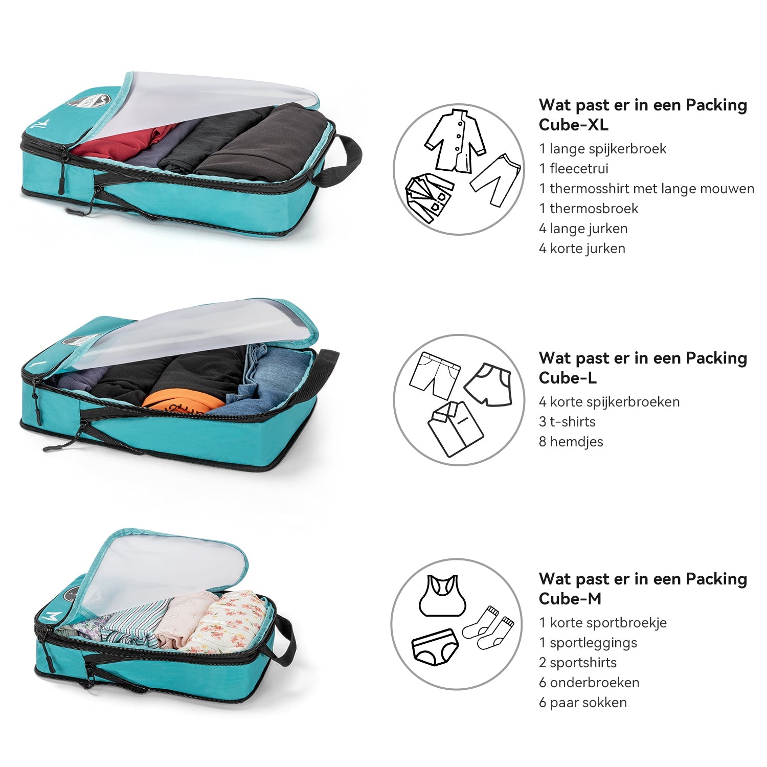 Bedankt voor je review en leuke foto's! Zo te zien ben je helemaal klaar voor jouw volgende reisavontuur en past er lekker veel in. Veel plezier met de Packing Cubes!