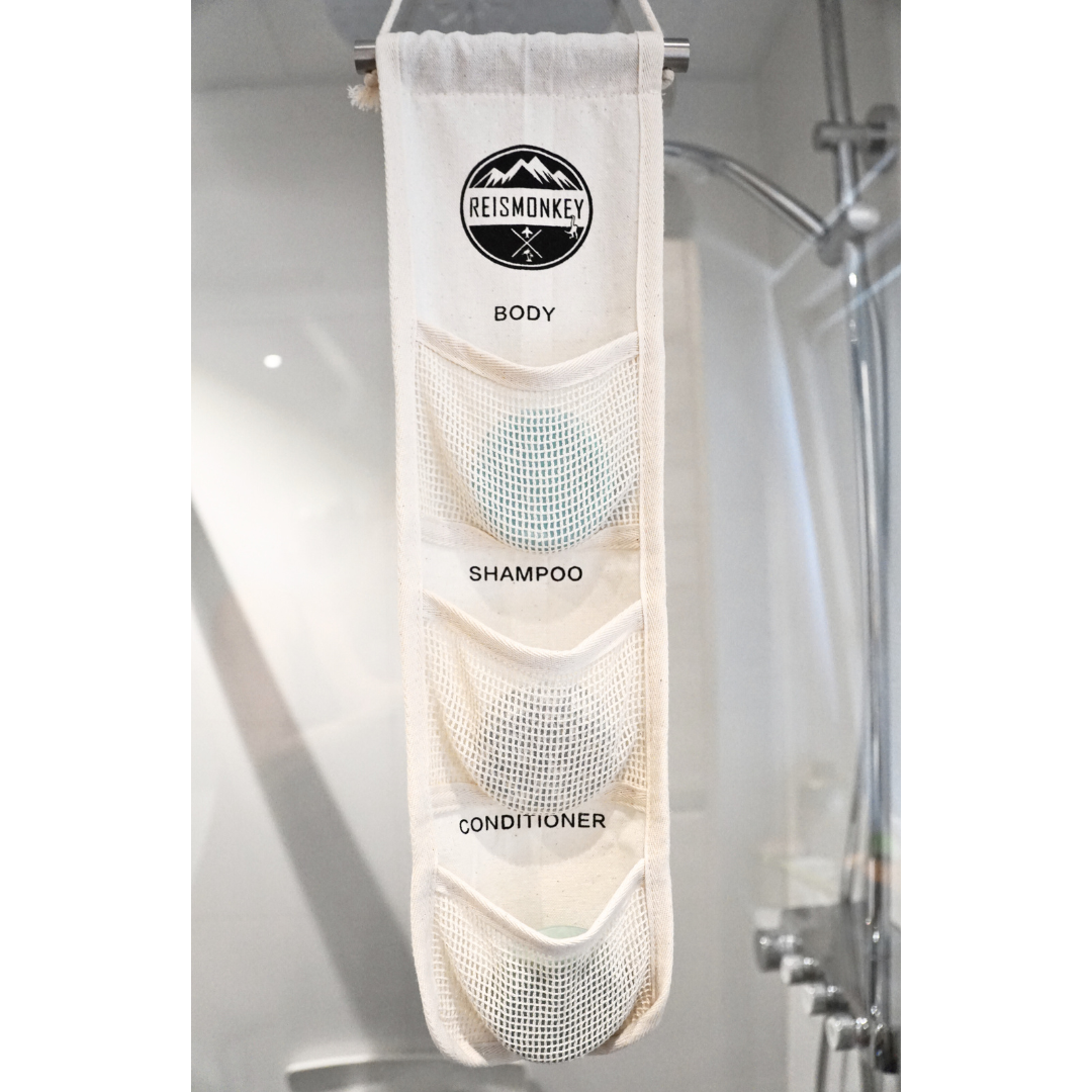Mit diesem Shampoo-Bar-Halter kannst du deine Shampoo-Bars jetzt ganz einfach aufhängen. Er bietet Platz für drei Bars, sodass du deine Shampoo-Bars einfach aufbewahren kannst . Spülungs- und Duschgels kannst du ganz einfach trocknen. So vermeidest du, sie auf einem schmutzigen Waschbecken abzulegen. Im Hotel würdest du das aus hygienischen Gründen in der Regel vermeiden und auch zu Hause möchtest du natürlich vermeiden, dass dein Waschbecken schmutzig wird.